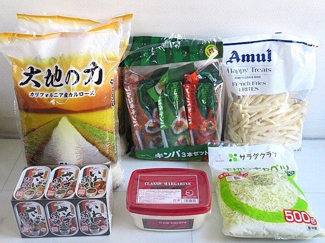 例によって、買ったものを写真左上から右下に紹介していきましょう。商品名はレシートの表記に近いものもあります。