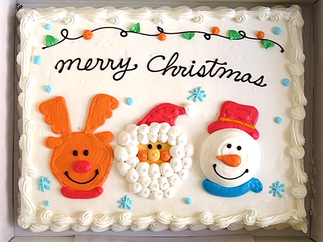 そんなわけで、私の注文は、スポンジはホワイトスポンジ、フィリングはチョコレートホイップクリーム、アイシングはホワイトホイップクリーム、メッセージは「Merry Christmas」、です。