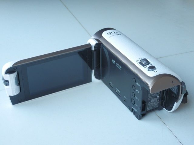 私が買った「HC-W580M」は、液晶画面側は「HC-V360MS」に近い感じなのですが、手に持つ側は全面にシボ加工が施されており白でも高級感を感じることができます。