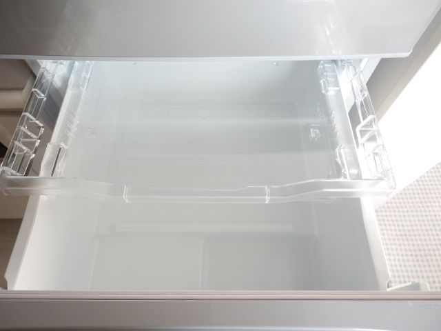 野菜室と下段冷凍室は、奥行きがあって、多くの食品を貯蔵でき、上側に適度な高さのスライドケースもあるため、使い勝手は良好です。また、野菜室の底にはトレー上の段差が付けられているのですが、これがあることで区分けしやすく、食品が滑って動かないため、意外と便利でした。