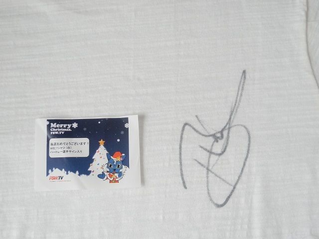 ちなみに、Tシャツのサインは、右背中のところに書かれています。サイズはMだったので少し小さいかもしれませんが、Tシャツは外着としてはまだ着ないので、しばらくはとっておこうと思います。