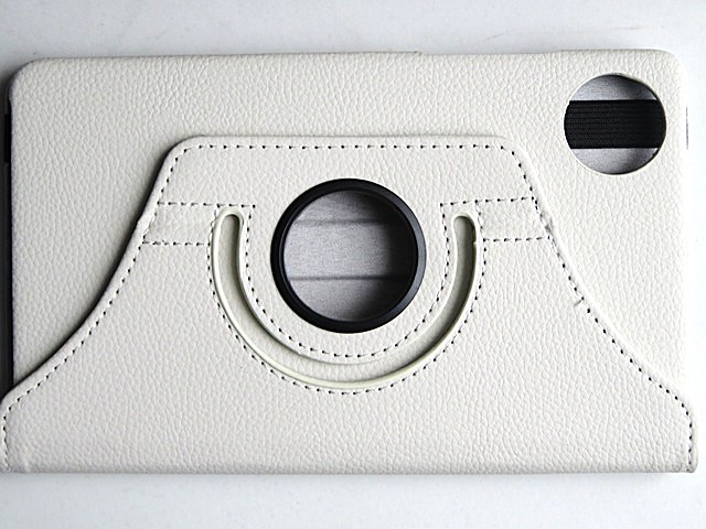 フタの内側はソフトで画面を保護してくれ、フタの固定はマグネットではなくゴムですが適度な張力です。カバーの回転部が丸くくりぬかれているため、そこから本体の裏側が見えているのですが、奥まっているので傷がつくことはありません。