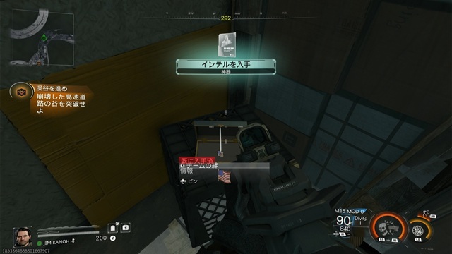 すぐに後ろを振り返り、左隅にある「情報(チームの絆)」をXボタンを押して入手します。「インテルを入手(神器)」と表示されます。