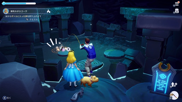アリスに話しかけて「瀕死のボロゴーヴクエストを開始」を選び、アリスに「宝物へと導いてくれる詩よ。しかも、さらに不思議なことに、これって私の文字なの」と言われたら、「確かに不思議だね・・・謎を解明しよう!」と提案します。友情クエスト「瀕死のボロゴーヴ」が始まります。