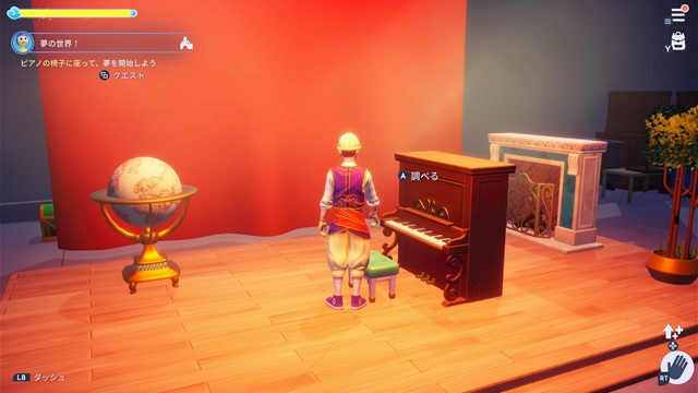 夢の製作スタジオにある家具のうち、クラシックでゴールドの飾りが付いた家具をピアノがあるセットの上に移動させます。「地球儀」、「暖炉」、「植木」の3つです。