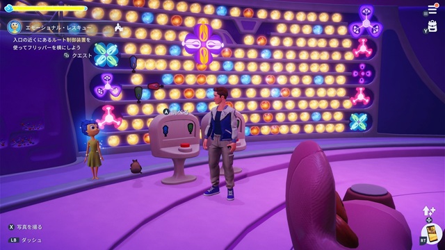 「インサイド・ヘッド」の世界でコンソールのパーツを探します。拾えるパーツは、「好奇心スライダー」、「好奇心アジャスター」、「イイナーのボタン」、「壊れた警戒心コネクター」、「壊れた警戒心ハンドル」の5点。