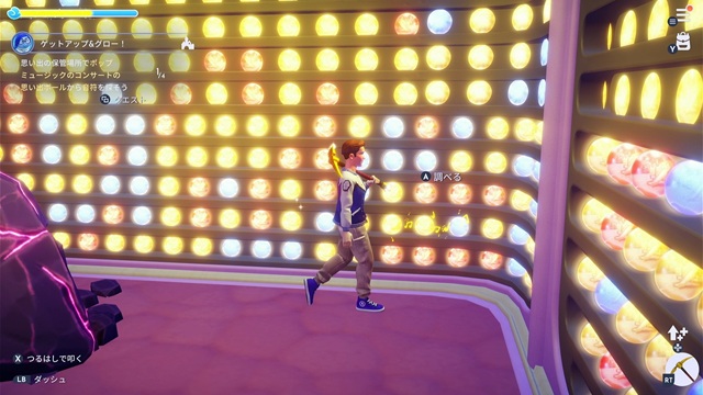 思い出の保管場所で「音楽の思い出ボール(ポップコンサート)」(0/4)を探します。「音楽の思い出ボール(ポップコンサート)」は、岩を壊した後などの壁際に黄色い音符が踊っているので近づいて調べます。