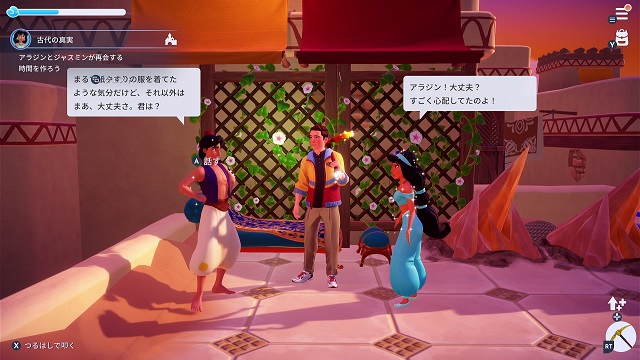 ドリームキャッスルの最上階に行き、左の扉を開くします。マーリンが現れてアグラバーの街が広がっていると言うので、1万5000を使用して開きます。世界クエスト「古代の真実」が始まります。「アラジン」の世界に入ります。