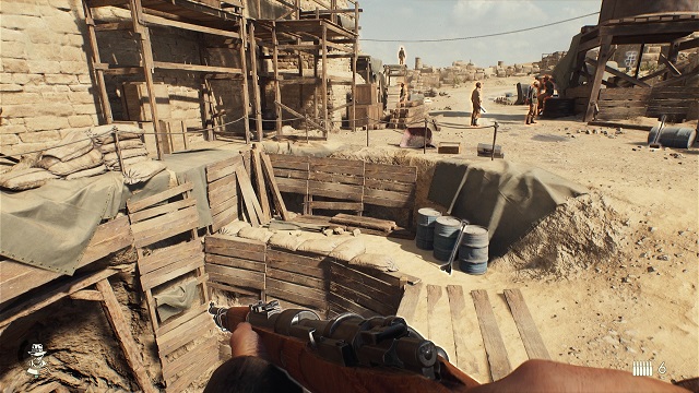 ピラミッドに向かって進み階段を下りたら、ナチスのトラックがありナチスが巡回しています。左の開いたゲートを通り抜けたいので、ゲート周辺にいるナチスを倒していきます。