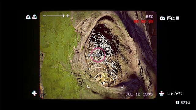 キャットのすぐ上の「あたしたちの小屋」(「森の廃屋」1/6)を録画し、右後ろに回り込んで木の洞の「木の中の頭蓋骨」(「森の廃屋」2/6)、「橋」(「森の廃屋」3/6)、「風鈴」(「森の廃屋」4/6)、「モリツグミ」(「鳥」10/15)、「屋外トイレ」(「森の廃屋」5/6)、屋根の「風見鶏」(「森の廃屋」6/6)も録画します。