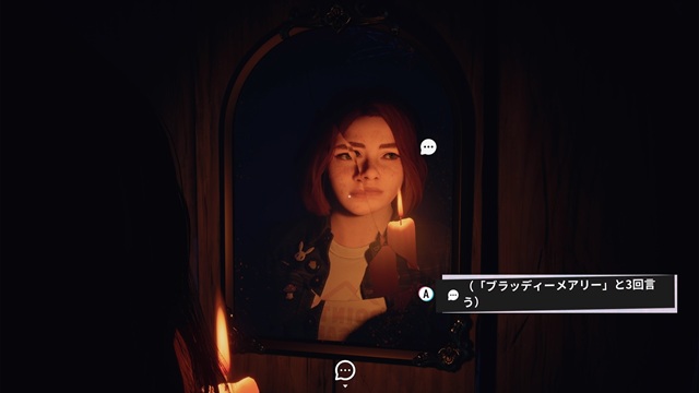 トイレに1人で入って、「ブラッディーメアリー」と全部で13回言います。実績「メアリーが出た!」が解除されます。キャットのカットシーンを見ます。