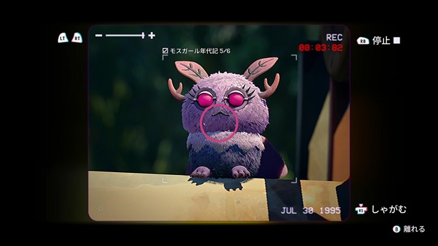 1995年の森の中の小屋になります。就寝中に目を覚ますと、キャットがいないので小屋の外に出ます。カットシーンが終わると、すぐに回顧録「月下の蛾」が始まるので、すぐに「月下の蛾」を追いながら録画します。