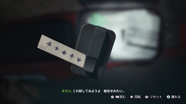 後ほど、「シーンを再プレイ」の「コレクターモード」でプレイし、「錠前」を「調べる」して「0827」に「回す」し、実績「ハートブレイク」を解除します。