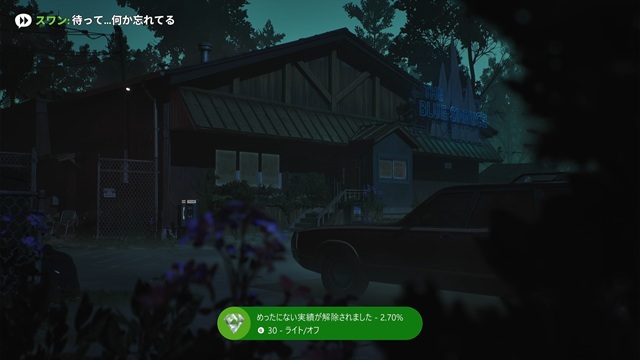 この際、右中を「オフにする」、右下を「オフにする」、左下を「オフにする」、左中を「オフにする」、右中を「オフにする」します。「ザ・ブルースプルース」の電気が落ち、実績「ライト/オフ」が解除されます。