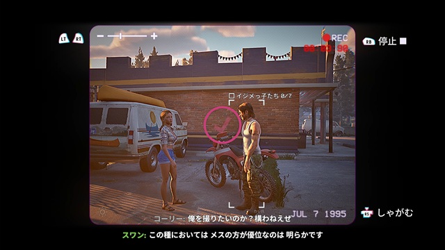 カップルであるバイカーのコーリーが現れてディランとコーリーが口喧嘩を始めたら、「(彼女たちを撮る)そして・・・撮影開始!」を選びます。「カレ氏」(「イジメっ子たち」1/7)、「イジメ野郎」(「イジメっ子たち」2/7)を録画します。