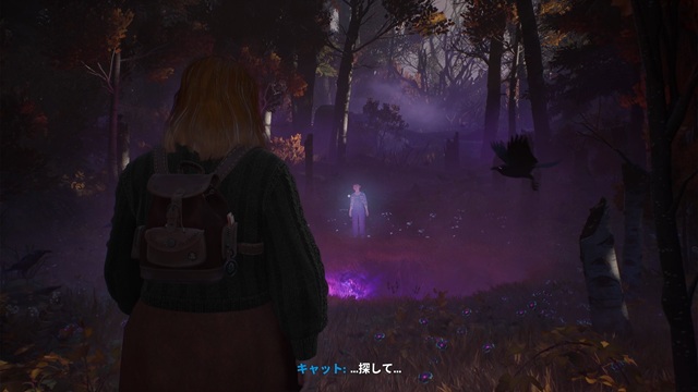 森にいます。道なりに歩き始めると、キャットから「スワン!」、「あたしはここ・・・」、「・・・待ってる・・・」、「・・・忘れないで・・・」、「・・・探して・・・」という呼びかけがあり、アビスの向こう側にキャットが立っています。