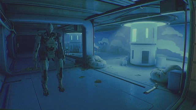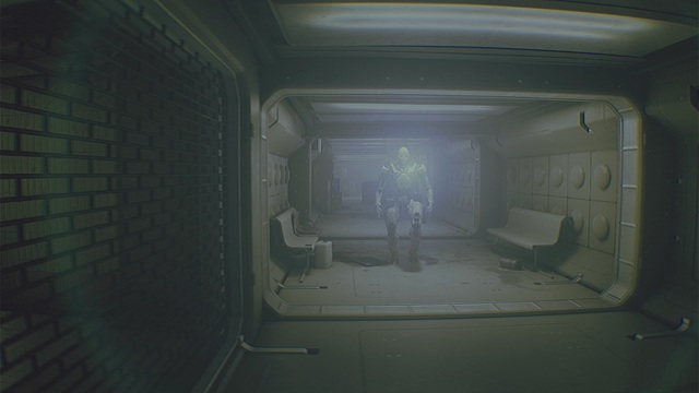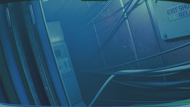 アーケードゲーム「GUNSHOW」をプレイし終えたら右を向いて突き当たりまで行き、ケーブルをたどって廊下の入口まで行きます。