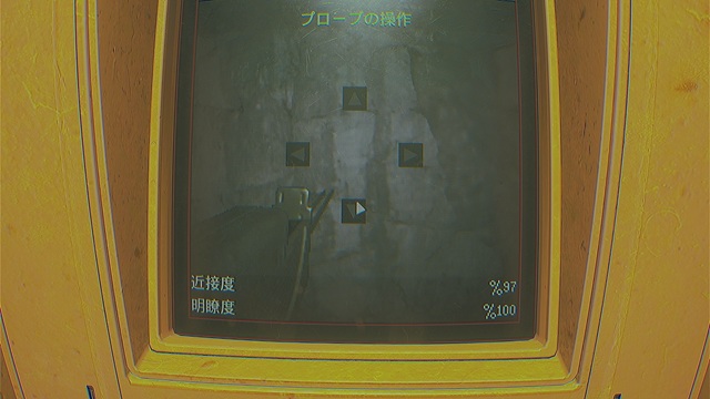中に入り、端末「プローブの操作」で4つの「▲」、「+」、「-」をクリックして近接度と明瞭度を「%100」にし、「プローブが正しい位置に配置されました」というメッセージが出るようにします。
