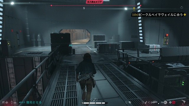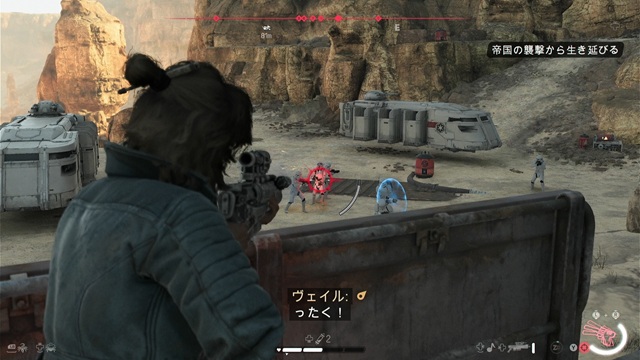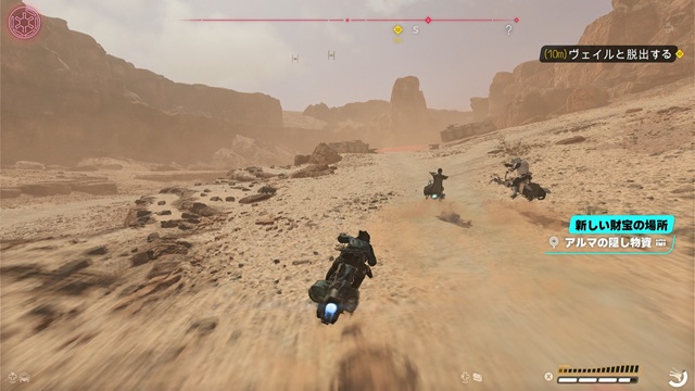 ヴェイルに離されるとスピーダーに乗るところからやり直しになってしまうため、ヴェイルのすぐ後方を走り続けるようにします。