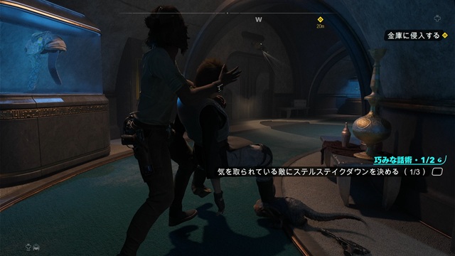 ドアが開いたら中にいるゼレク・ベシュの用心棒を倒し、コンピューターにアクセスします。金庫のセキュリティで、右トリガーを引いてスライスすることで解錠できます。