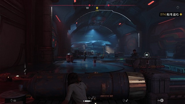 格納庫で敵5人を倒し、船に乗り込んでカットシーンを見ます。船では、右トリガーを引いて防壁を破壊し、左スティックを前に倒して発進させてカットシーンを見ます。