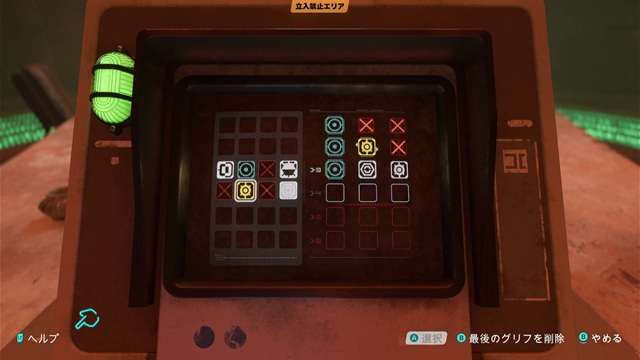 左にある記号を右に入れ、その列にない記号は赤く表示され、その列にあるものの場所が違っている記号は黄色く表示され、その列にあり場所も正しい記号は青く表示されます。これを頼りに記号を正しく入れていきます。