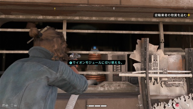 奥から左に行き、ハシゴを設置して使います。下に下りたら、コンテナから「イオンエネルギーコンバーター」を盗み、新しいクエストアイテム「レンパリ・ステーションのキーカード」などを盗み、コンピューターにアクセスします。