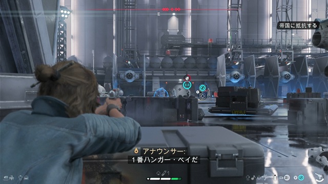 帝国軍士官とストームトルーパーを倒します。ストームトルーパーの増援が現れるので、燃料タンクも利用しつつ一掃します。